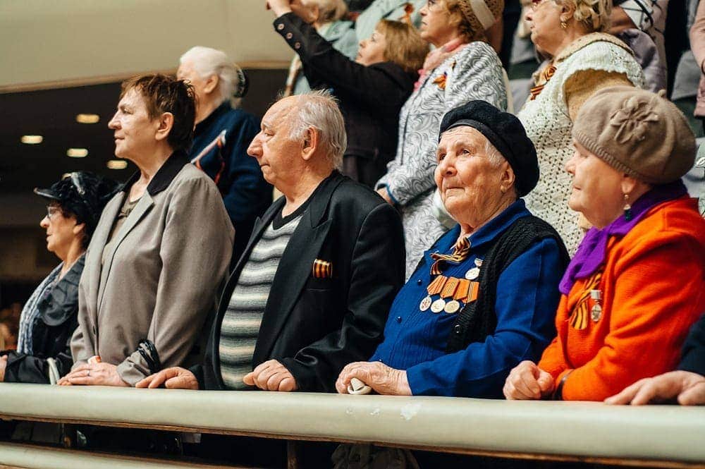 При первых же словах слушатели встали, выражая глубокую скорбь и почтение к трагическим событиям тех лет, вспоминая своих родных и близких. Практически, в каждой семье были те, кто воевал на фронте, кто бессменно работал на заводах и фабриках в тылу, собирал колоски на полях, был в оккупации или в плену, погиб при бомбежке, умер от голода, замучен в концлагерях…
