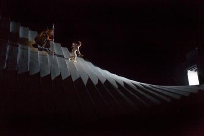 Робер Лепаж придумал необычную декорацию, состоящую из 24 гибко соединенных между собой огромных планок из алюминия и стекловолокна