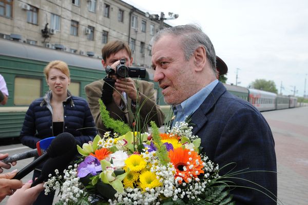 На вокзале маэстро под звуки военного духового оркестра встречал начальник волгоградского гарнизона генерал-майор Сергей Леготин.