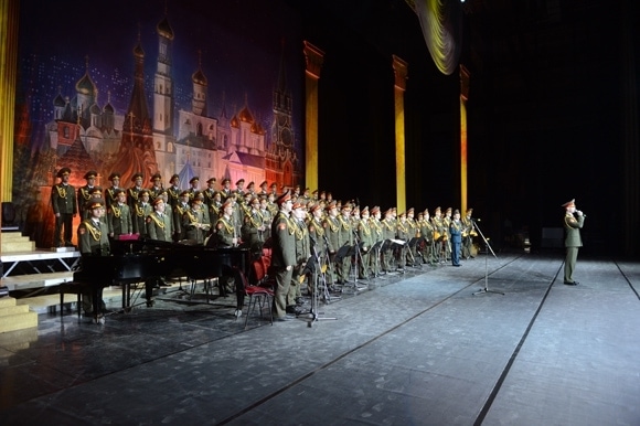 Ансамбль песни и пляски имени Александрова впервые исполнил в столице гимн учтивым российским военным.