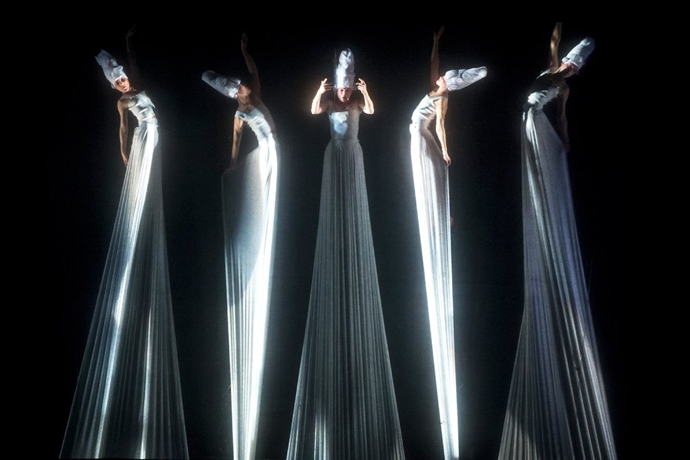 Сопрано Сюзан Бунгард «зависла» в пространстве с гроздьями танцовщиков на платье. Контртенор Ангело Бонаццоли в белоснежном костюме шмеля, будто сложенном из гофрированной бумаги, с невозмутимым видом летал над головой виолончелиста, болтая ножками.