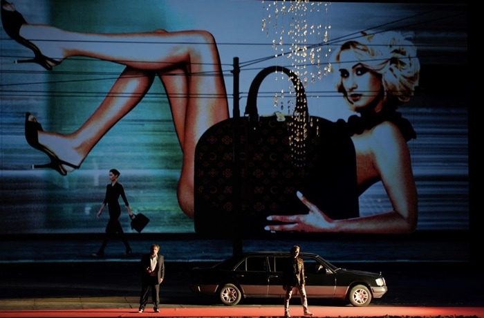 Вик не следует за Толстым или Прокофьевым, он создает оперу о цинизме и беспощадности войны, в которой нет победителей и проигравших. Она убивает, уродует и калечит сотни тысяч жизней. Именно обобщенный образ войны в этой постановке становится главным действующим лицом. Отсюда ясно, почему Вик активно использует гротеск (те же гости на балу в противогазах и танк в картинах мира), почему под орлом Третьего рейха развевается французский флаг с истерично намалеванным «нет» на фоне не менее истерично намалеванного огромного «мир», почему после ониксовой стены, люстр Swarovski и проекции с обнаженной, вполне себе современной моделью, прикрывающей наготу сумкой Louis Vuitton – появляются рабочие в советской одежде с велосипедами и обшарпанными комодами. Каждое решение продумано и несет в себе главную режиссерскую мысль – война не щадит никого и никогда.