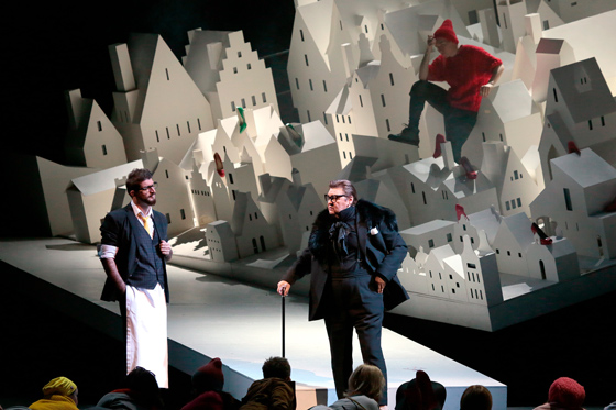 Белый бумажный городок Амьен и белый бумажный кораблик в Гавре противопоставлены черному царству парижской роскошной жизни Манон, в центре которого — огромное, чуть наклоненное зеркало, отражающее сцену, дирижерскую яму и даже первые ряды партера.