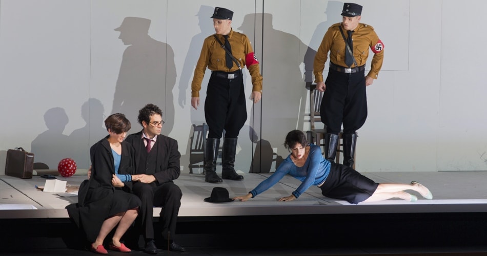 В какой-то момент перегородки исчезают, вытянутая в длину сцена оказывается залита светом. Ясности взгляда соответствует ясность музыки. В ней много цитат, как переработанных, так и прямых. Например, арию «L’amour» из «Кармен» Бизе, которую поет мачеха Паулинка (меццо-сопрано Анаик Морель), можно услышать и живьем, и в исторической записи (мачеха была известной певицей, ее голос сохранили пластинки). Звучат и еврейские мотивы, и нацистские мелодии.