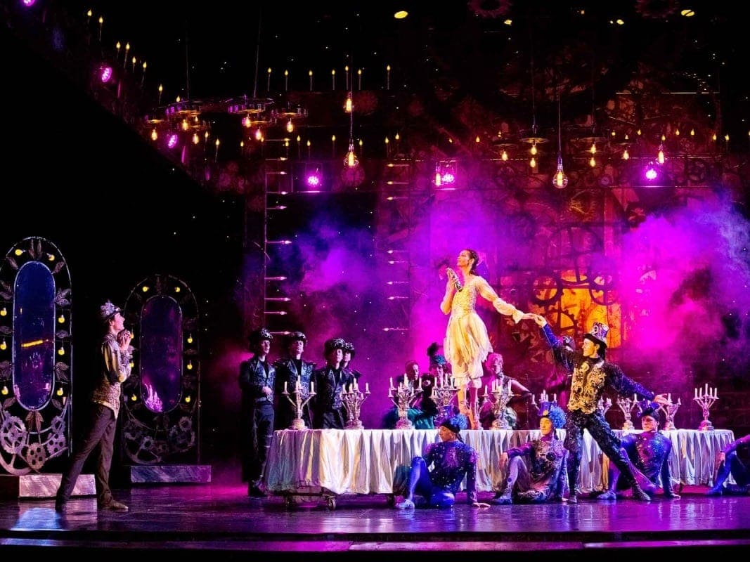 На сцене часы солнечные, механические, песочные в блеске канделябров и бесконечности зеркал. Феерия в стиле стимпанк, когда человечество поклонялось механике и технологии паровых машин. Впрочем, и в XXI веке публике близка история про главный в жизни миг, когда на часах без пяти минут счастье.